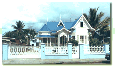 'Built in the 1920s and recently extensively renovated, the Trinidad Gingerbread House guest house is a picturesque, traditional Trinidad home, offering three double air conditioned rooms each with private bathroom ensuite, cable television, fridge, high speed internet (wireless and cable), in-room safe and in-room phone. Rooms have traditional high ceilings and a timber gallery with original fretworked eaves wraps around half of the house providing a charming and shady octagonal seating area under a pyramid roof.'